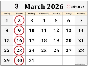 定休日 月曜日