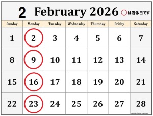 営業日カレンダー ○は店休日です。